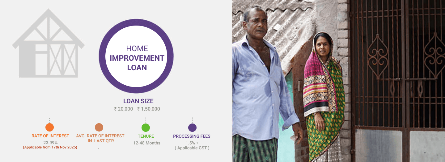 Our Home Improvement loan empowers customers to enhance their existing homes, thereby elevating their quality of life and ensuring their privacy, safety, and well-being. By availing this loan, individuals and families can upgrade their living conditions, creating a positive impact on their lives.