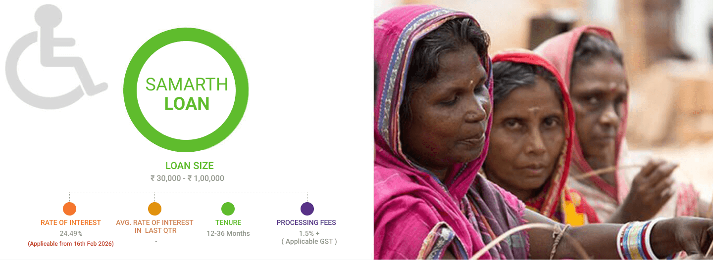 Financial assistance to marginalized segments who have historically been excluded from mainstream financial services. This inclusive program specifically targets individuals such as persons with disabilities, transgender people, single mothers, widows, unmarried women, and leprosy-affected communities.