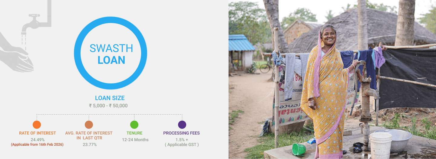 Our SWASTH Loan is designed to facilitate the installation of safe water and sanitation infrastructure. Our loan product is structured to deliver a wide range of advantages, including increased convenience, time savings, improved privacy, enhanced safety, decreased healthcare costs, and an overall enhancement in the quality of life.
